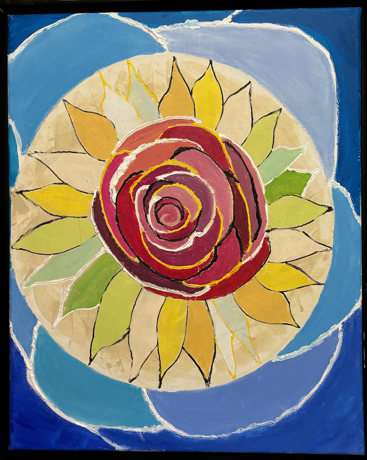 Yep, I painted a rose. Who knew? And appears to sing! First it was landscapes, now it is roses. What’s next, still life of fruit in a bowl?